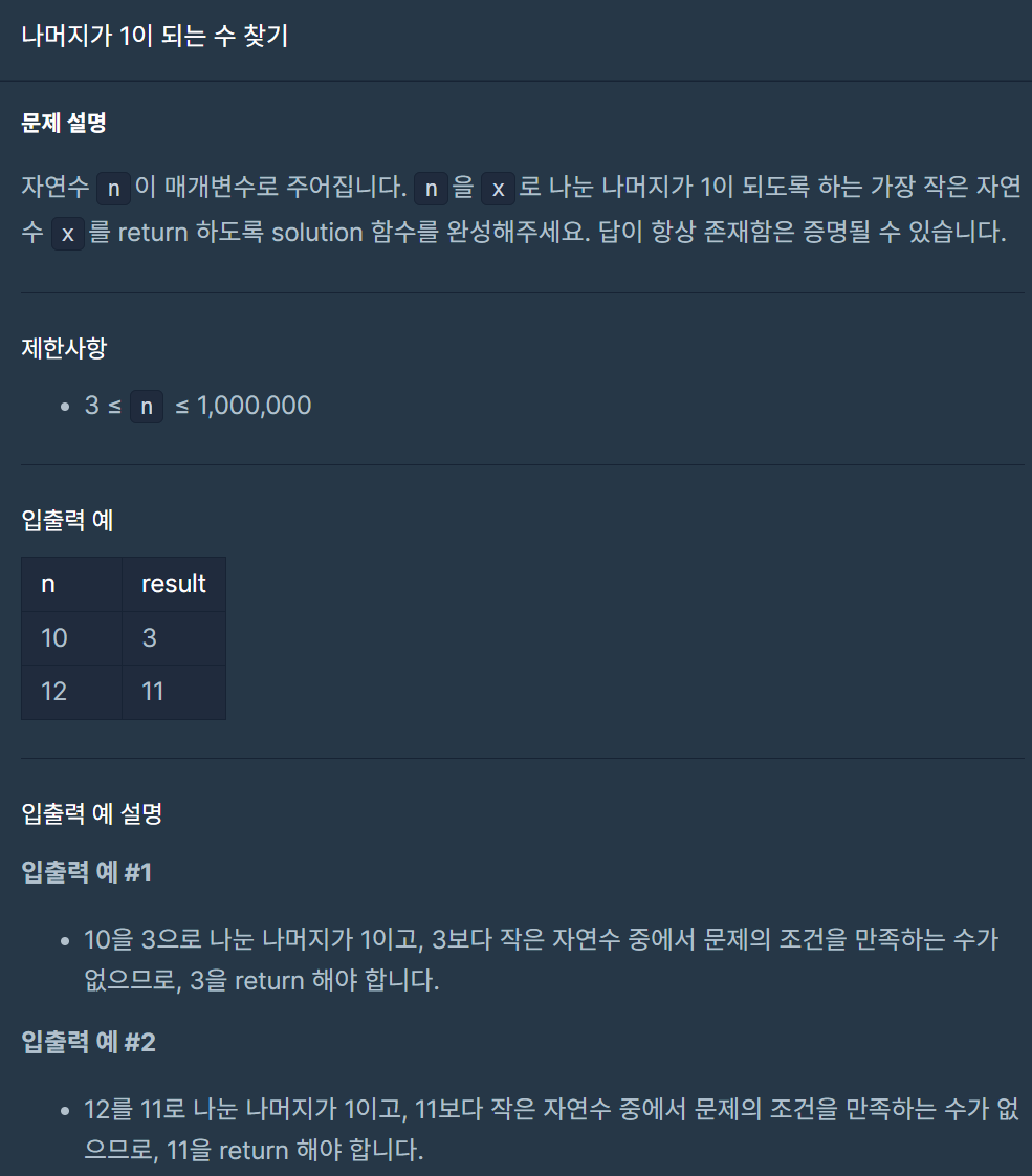 - 1부터 n까지의 수 중에서 n을 나누었을 때 나머지가 1인 수들을 리스트로 만들어 줌