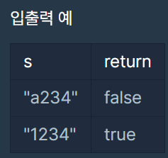 예를 들어 s가 "a234"이면 False를 리턴하고 "1234"라면 True를 리턴하면 됩니다.