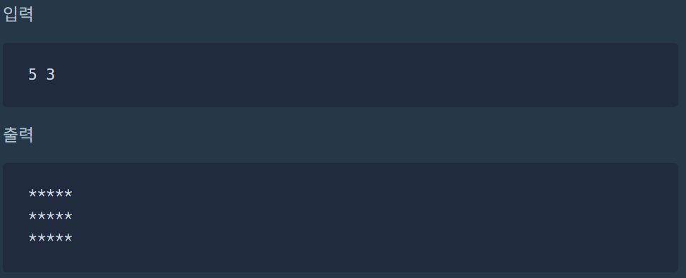 별(*) 문자를 이용해 가로의 길이가 n, 세로의 길이가 m인 직사각형 형태를 출력해보세요.