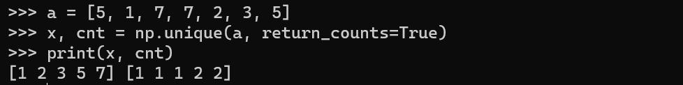 - 형식) unique(a, return_counts=True)