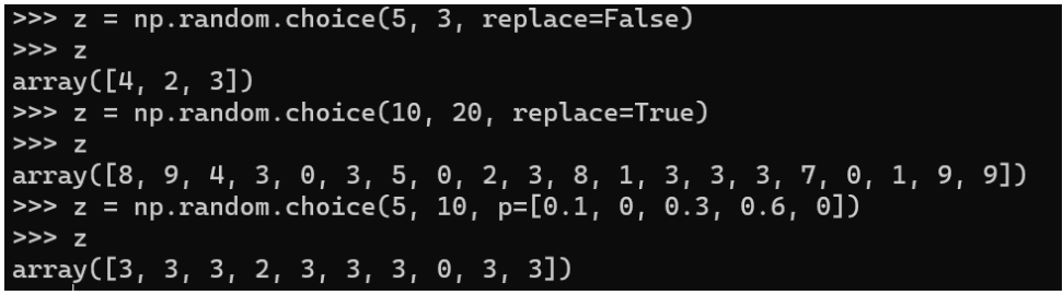 - 형식) choice(a, size=None, replace=True, p=None)