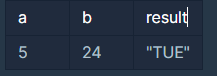 입니다. 예를 들어 a=5, b=24라면 5월 24일은 화요일이므로 문자열 "TUE"를 반환하세요.