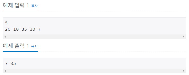 N개의 정수가 주어진다. 이때, 최솟값과 최댓값을 구하는 프로그램을 작성하시오.