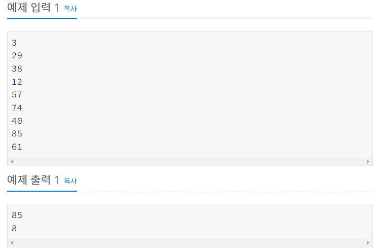 이 주어지면, 이들 중 최댓값은 85이고, 이 값은 8번째 수이다.