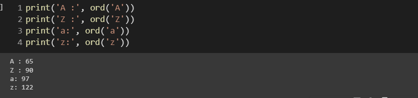예를 들어 ord('a')는 정수 97을 반환한다. 이것은 chr()의 반대이다.