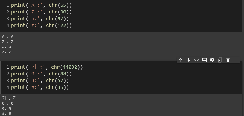 2. chr(정수)
