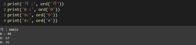 1. ord(문자)