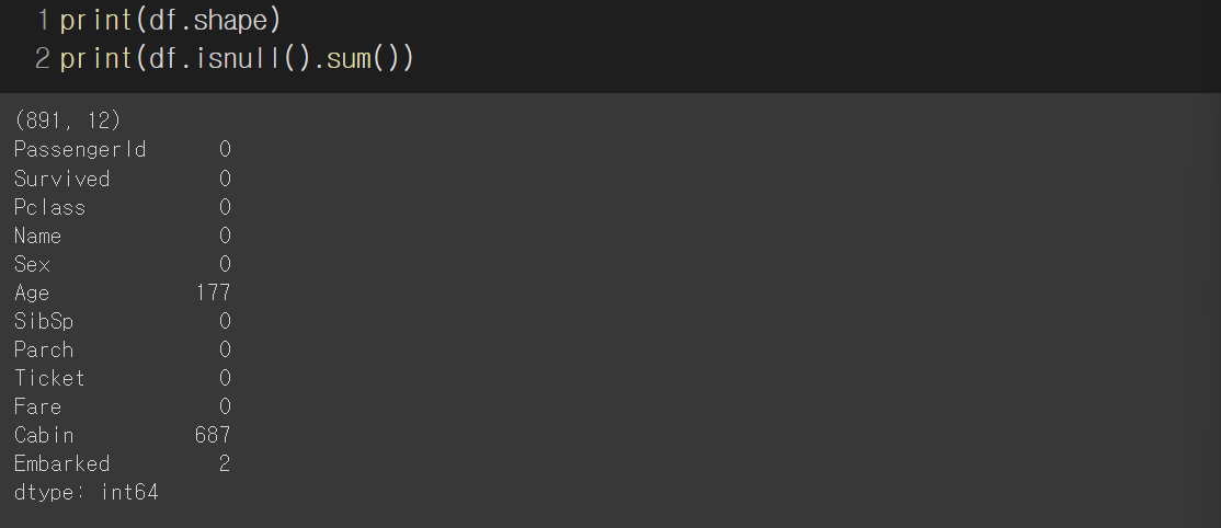 1. EDA작업 ( 데이터 결측값, shape확인)