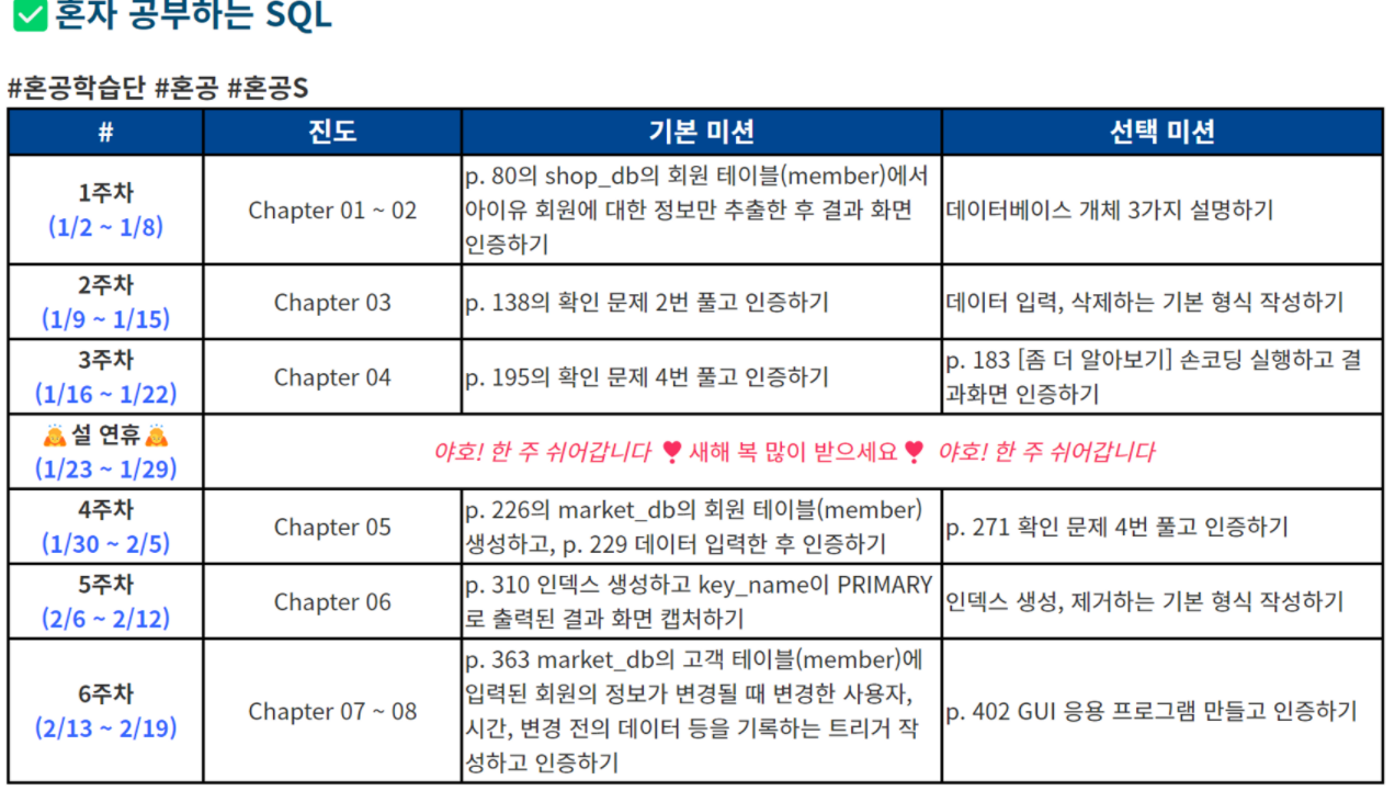 혼공학습단 SQL 커리큘럼