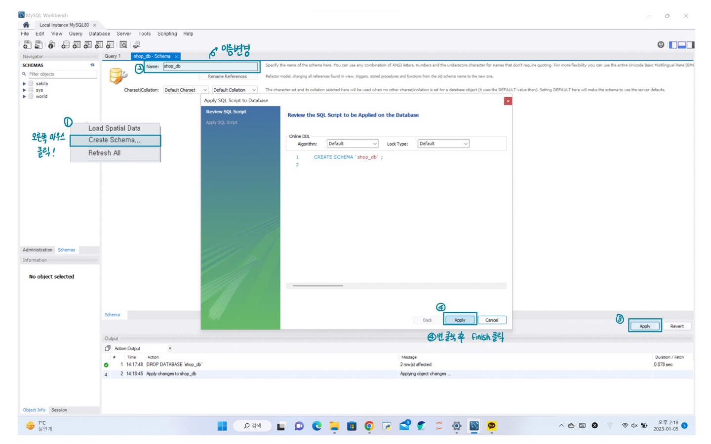 - 이름은 show_db로 데이터베이스(스키마) 생성