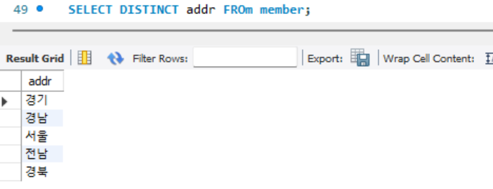 SELECT DISTINCT addr FROm member;