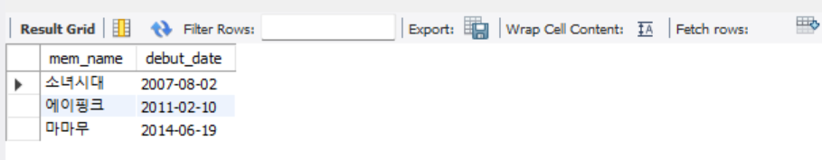 SELECT mem_name, debut_date