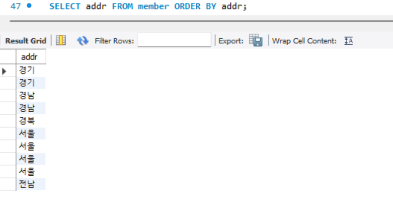 SELECT addr FROM member ORDER BY addr;